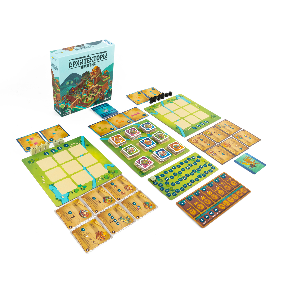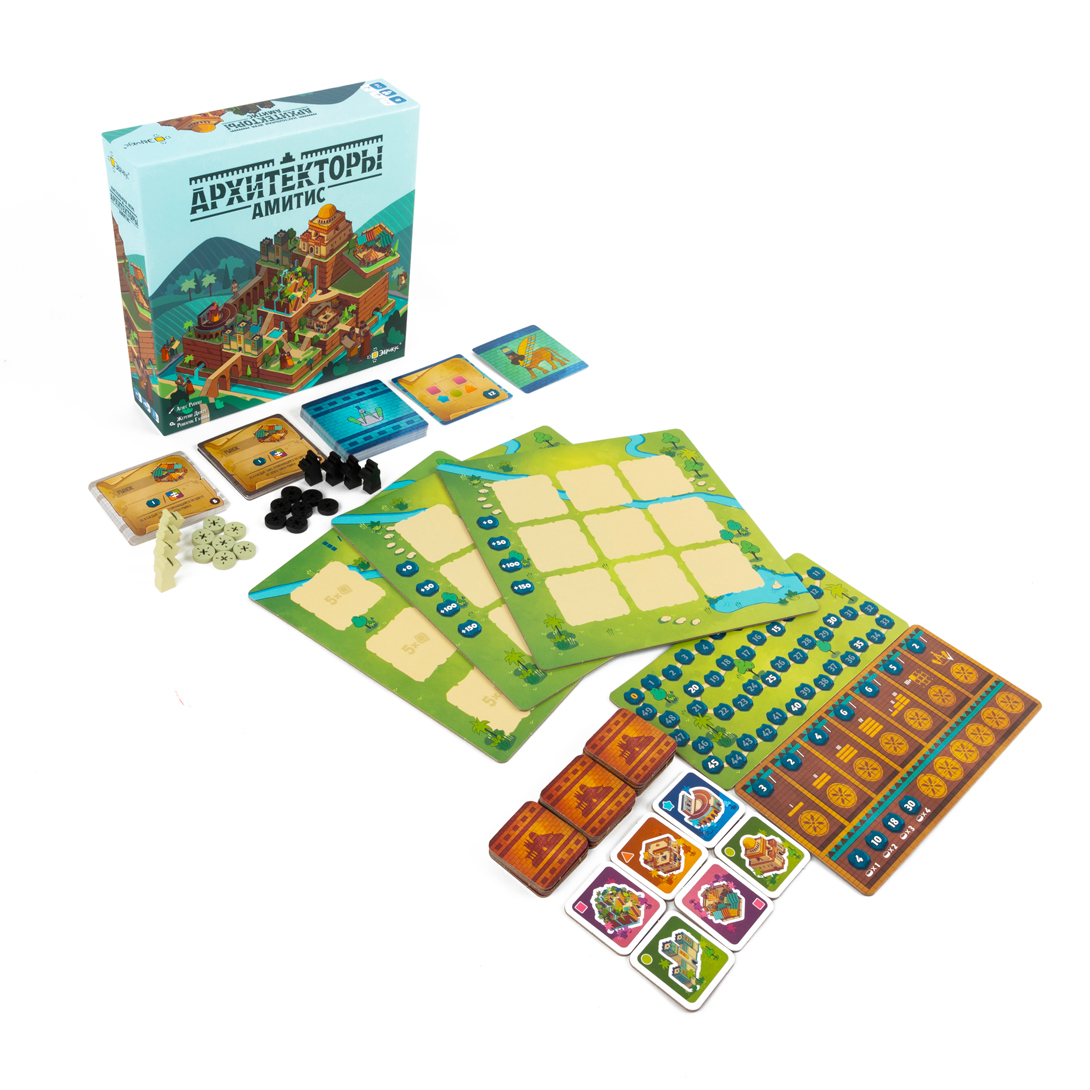 Царь Вавилона задумал сделать своей супруге, царице Амитис, необычный подарок – город с великолепными садами и величественными постройками. Для реализации этого замысла он выбирает двух лучших архитекторов, и теперь вы в дуэли со своим соперником будете создавать впечатляющие архитектурные ансамбли, соревнуясь за титул любимца царя. «Архитекторы Амитис» – дуэльная настольная игра с упором на размещение тайлов, продуманную планировку города и аккуратную работу с ограниченными действиями.