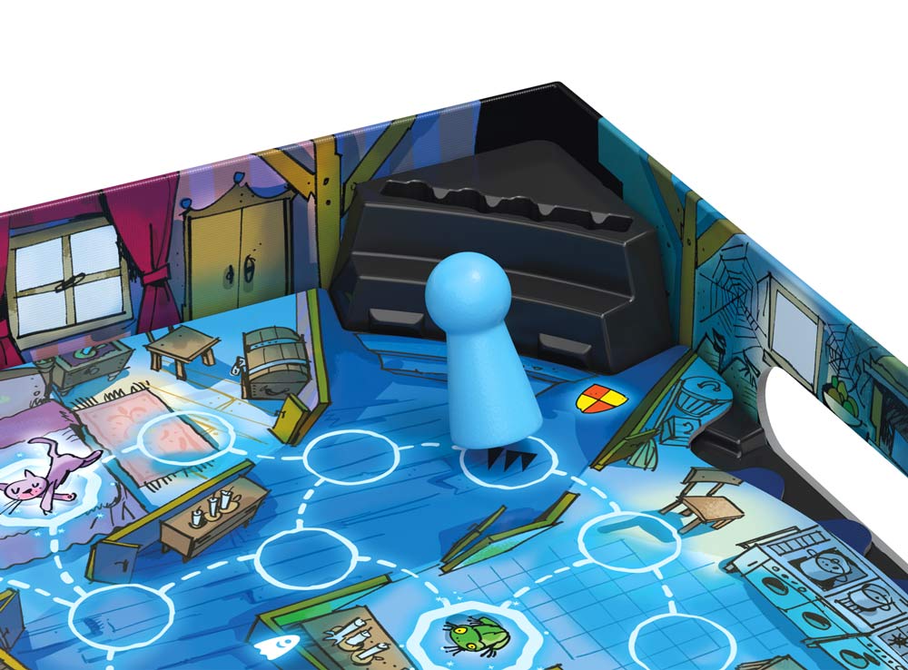 - Бросайте два кубика — голубой для движения магов, кубик призраков для вращения колеса