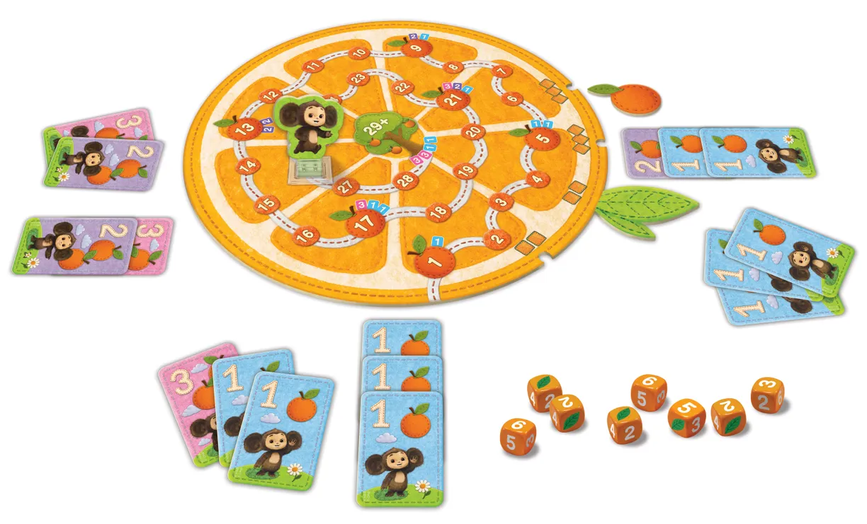 «Чебурашка: Апельсинка» – яркая детская настольная игра, в которой любимый герой попадает в смешную историю с апельсиновым переполохом. В тихом приморском городке внезапно начинается настоящий «дождь» из апельсинов, а вместе с фруктами появляется загадочный ушастый зверёк, которого все называют Чебурашкой. Игрокам предстоит бросать кубик, двигаться по полю и разыгрывать специальные карточки, чтобы собирать апельсинки, помогать Чебурашке и первым добраться до финиша.