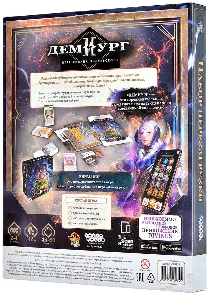 Важно, что «Демиург: Набор перезагрузки» — это именно дополнение, без собственных сценариев и карты мира. Для игры вам по‑прежнему нужна полноценная базовая коробка «Демиург», а также установленное бесплатное мобильное приложение Divinus, которое сопровождает кампанию. Набор никак не изменяет правила прохождения, а только возвращает нужные для кампании компоненты к состоянию, подходящему для нового старта.