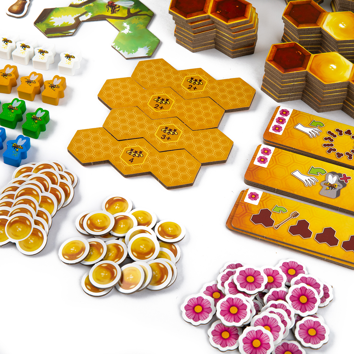 Тайлы содержат разные типы ячеек: обычные соты, места для мёда, клетки с цветами и специальные позиции для шершней. После добавления тайла игрок может разместить своих рабочих пчёл на свободных ячейках, стараясь занять клетки, которые принесут максимальное количество очков к концу партии. Важную роль играют шершни: при определённых условиях игроки могут передвигать их по улью, угрожая чужим рабочим пчёлам и мешая планам соперников.