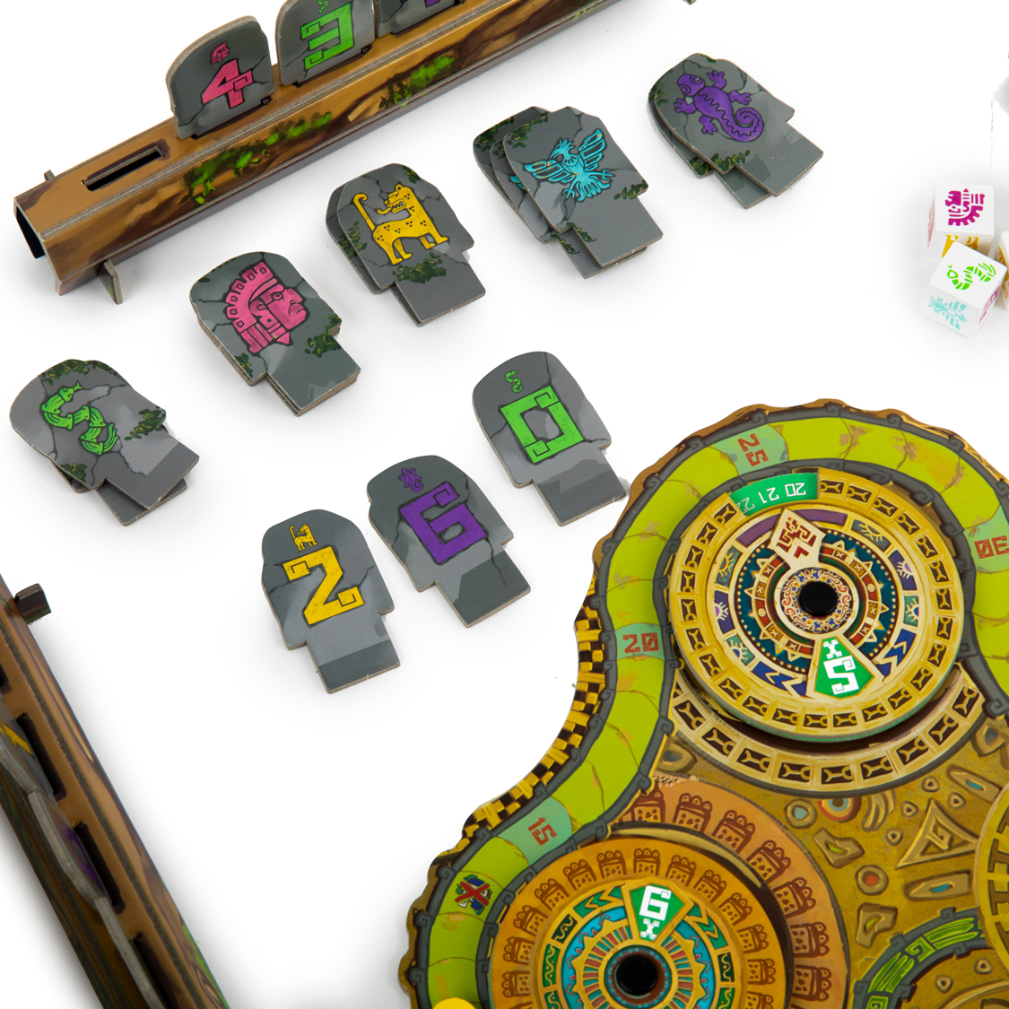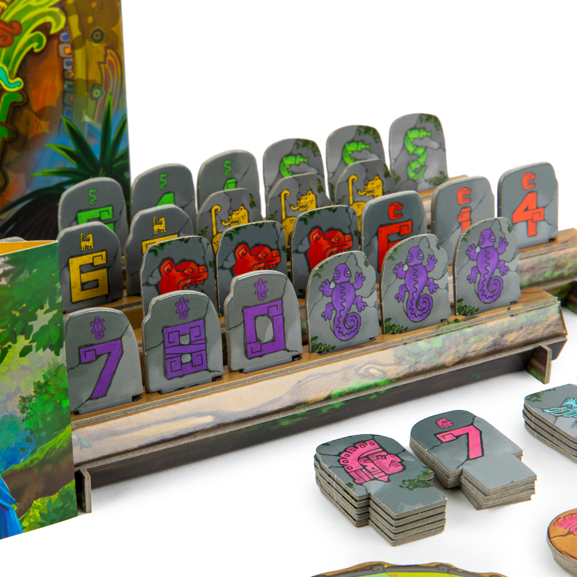 Каждому игроку выдаётся сборная подставка и набор жетонов камней. Камни перемешиваются и расставляются на подставке числовой стороной от игрока: вы знаете только цвета и позиции, но не видите сами цифры. Зато отлично различаете комбинации на подставках соперников – именно это и станет основой для логических выводов. На стол выкладывается игровое поле с треком очков и специальными зонами для поворотных дисков, а также блокнот, куда каждый будет записывать свои предположения.