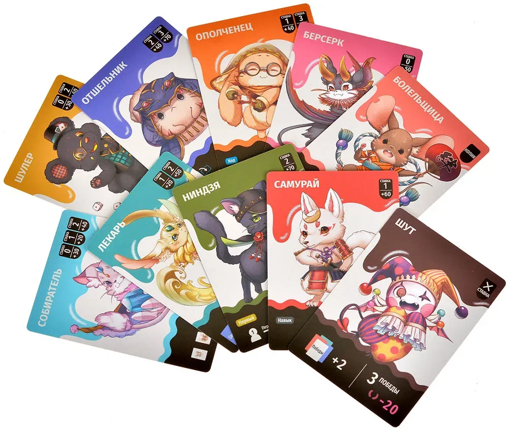 Особую остроту добавляют старшие карты и две чёрные «десятки» берсерка. В колоде есть младшие и старшие игральные карты, а берсерки могут ломать привычный расклад, превращая безобидную взятку в поле для рискованной, но выгодной комбинации. Правители и персонажи позволяют переигрывать базовые правила: менять приоритеты достоинств, защищаться от слишком агрессивных ходов соперников или внезапно усиливать свои ставки в нужный момент. Всё это делает партии непредсказуемыми, но при этом опирающимися на понятную базовую механику взяток.