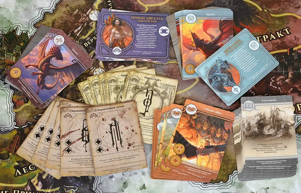 Интересно, что игра не ограничивается простым противостоянием «люди против драконов». В зависимости от ситуации участники могут временно объединяться против слишком разогнавшегося соперника, а иногда даже генерал и дракон становятся союзниками, заключая ту самую «связь драконов» (Dragonbond). Такая связь наделяет обоих дополнительной силой и может резко изменить баланс сил на поле: вчерашние враги вместе сметают третьего игрока, а потом готовятся предать друг друга в борьбе за окончательную победу. Полукооперативный элемент добавляет за столом переговоры, блеф и интригу, напоминающую дипломатические игры, но в более компактном формате.