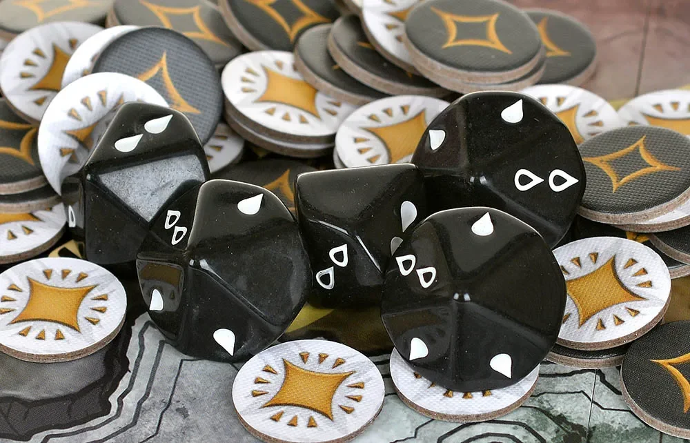 143 жетона (жетоны Ваалы, могущества, состояний, маркеры контроля и прочие служебные элементы).