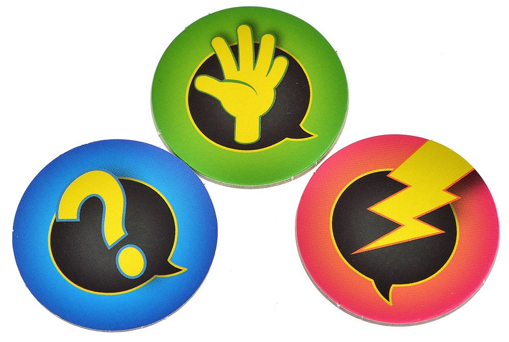 • 3 жетона: «Мой ход», «Слово икс», «Не в тему» – используются для обозначения текущего игрока и оформления обвинений.