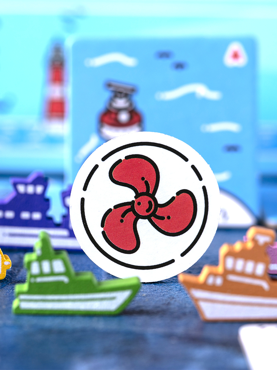6 деревянных фишек — фигурки кораблей и, при необходимости, специальные маркеры для некоторых эффектов (например, ветрогенераторов).