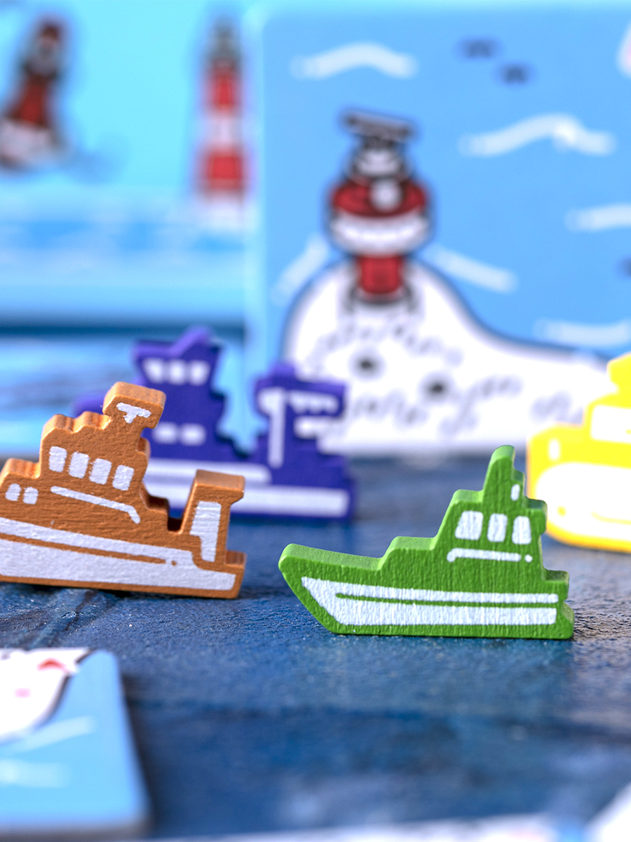 Главное новшество — семь уникальных кораблей, каждый со своей асимметричной способностью и уровнем сложности. Теперь у каждого игрока появляется личное судно, которое влияет на движение, выкладку квадратов и итоговый результат команды. Экспедиционный катер, например, меньше манёврен на воде, но позволяет выкладывать жетоны через сушу, прокладывая необычные маршруты вдоль береговой линии. Крановое судно строит ветрогенераторы, которые повышают гибкость перемещения и приносят дополнительные победные очки за освоение прибрежных ветропарков. Другие корабли — исследовательское судно, береговая охрана, воздушная подушка и строительное судно — дают эффекты вроде обмена тайлов, мгновенных перемещений к штабам и аутпостам или восстановления жетонов движения.
