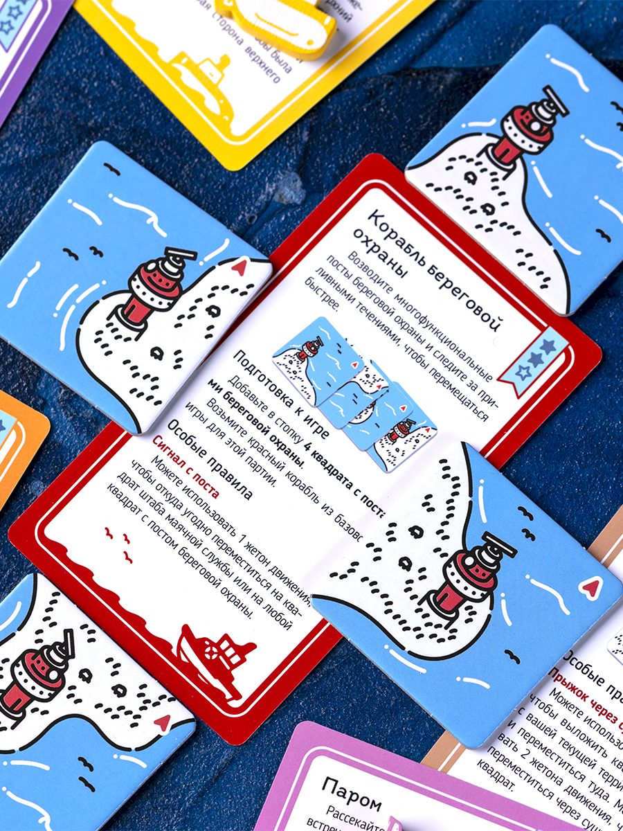 «Морской патруль. Корабли и берега» — дополнение к кооперативной игре «Морской патруль» (Beacon Patrol), которое делает знакомое патрулирование побережья Северного моря ещё более тактическим и разнообразным. Если базовая игра уже понравилась за спокойное совместное строительство карты и простые правила, этот набор добавит новые роли, особенности маршрутов и неожиданные способы набора очков.