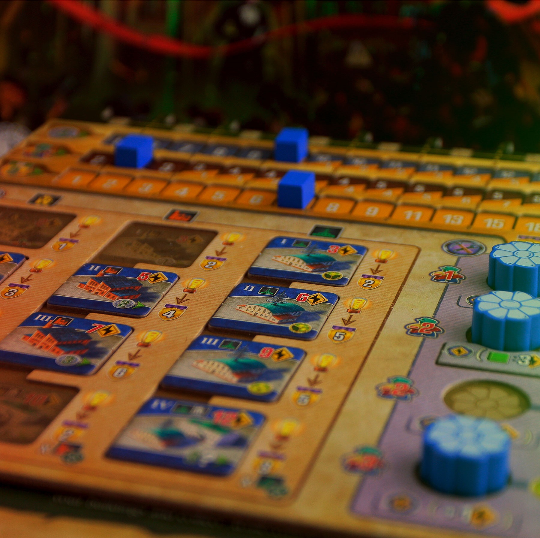 Каждый ход — стратегический выбор: строить, добывать или заряжать. Размещайте плитки действий, активируйте бонусы через цветовые совпадения и создавайте мощнейшую промышленную империю!
