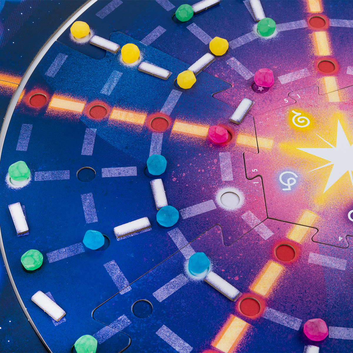 Размещая звёзды, важно учитывать фазу Луны, активную в текущем раунде. Именно она показывает, в каких областях звёздного неба вам разрешено выкладывать новые фишки. Звёзды можно ставить как в белые ячейки внутри сектора, так и на красные точки на границах секторов: такие позиции гибче, но за них приходится платить жетонами падающих звёзд. Линии созвездий соединяют отдельные звёзды и часто становятся ключевым элементом для выполнения целей и набора очков.