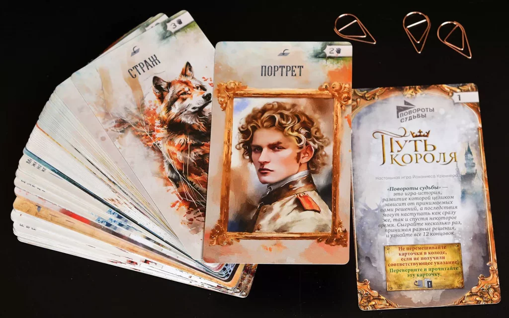«Повороты судьбы: Путь короля» — нарративная карточная игра, в которой вы проживаете жизнь наследного принца от юности до момента коронации, а каждый выбор определяет судьбу королевства и вашу личную историю. Здесь нет привычной «победы» или «поражения» в классическом смысле: каждая партия — это уникальный путь героя к одной из множества возможных концовок.