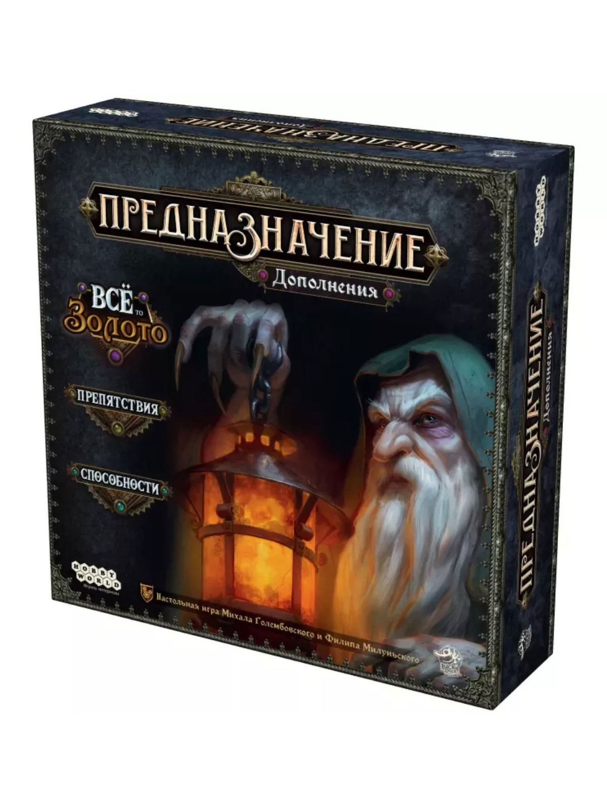 Набор «Предназначение. Дополнения "Ведьмин лес: Всё то золото", "Препятствия", "Способности"» расширяет мир приключенческой игры «Предназначение» и её кампании «Ведьмин лес», добавляя к ним новые испытания, сюжет и уникальные навыки персонажей. Это три модуля в одной коробке: два механических («Препятствия» и «Способности») и одно сюжетное дополнение («Всё то золото»), которые можно комбинировать между собой и с другими коробками серии.