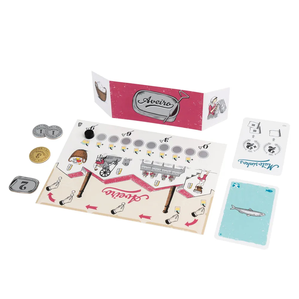 При этом игра выглядит очень стильно и точно порадует настольных эстетов своим оформлением и качеством компонентов. Тут и поп-арт старых рекламных афиш, и лёгкий примитивизм, и игривые линии скетчинга, и леттеринг в стиле росписи вывесок магазинов начала XX-го века. Все цвета приглушённые, неброские, а все серые элементы и вовсе напечатаны согласно цветовой модели Pantone — и буквально сияют, напоминая одновременно и о рыбьей чешуе, и о консервных банках, и о манящем серебре эскудо — португальской валюты, которую позднее сменило евро.
