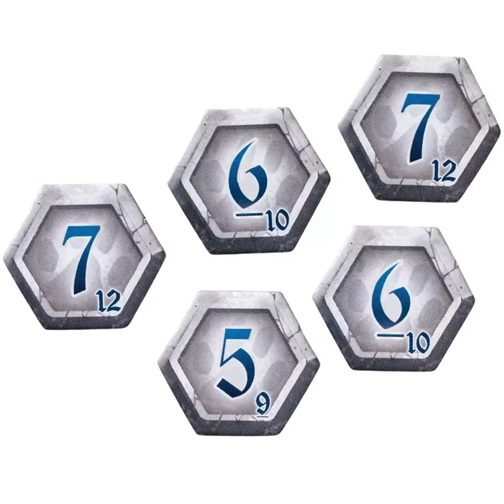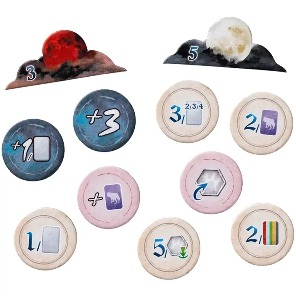 Каждая территория стартует с тремя жетонами шрамов – один открыт, два закрыты. Когда в каком‑то регионе заканчиваются шрамы, на него выкладывается жетон Луны: