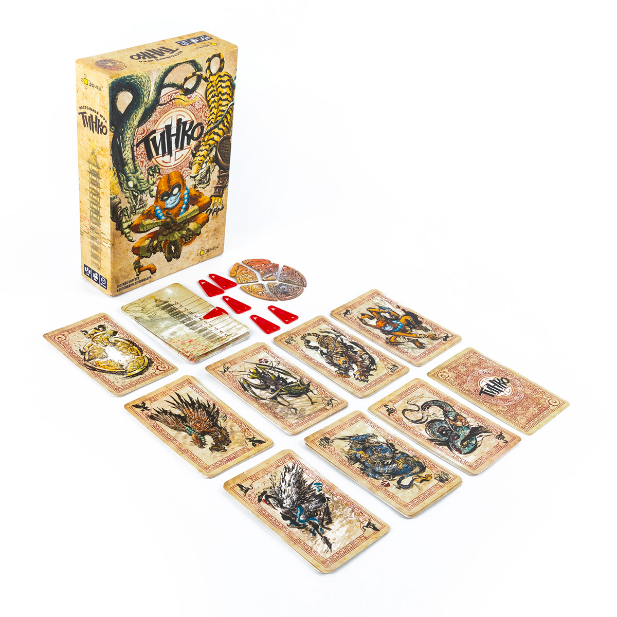 «Тинко» – компактная и очень азартная карточная игра для шумной компании, в которой все действуют одновременно и стараются быстрее других собрать нужный набор карт. Игроки становятся учениками мастера боевых искусств и тренируются управлять «формами» животных и цветами медальона, чтобы доказать свою гармонию и ловкость. На столе лежат осколки Медальона Согласия, которых всегда на одного меньше, чем участников, и именно за них разворачивается основная борьба.