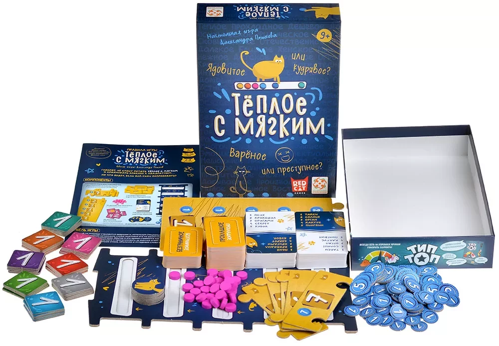 Компактный по правилам, но содержательный по ощущениям, «Тёплое с мягким» отлично работает как игра для разогрева перед более сложными настолками или как основное развлечение на вечеринки. 20–30 минут на партию, минимум подготовки (разложить поле для голосования, раздать жетоны и карты) и практически бесконечное число возможных сочетаний слов и шкал делают его удобным выбором для любых компаний 9+