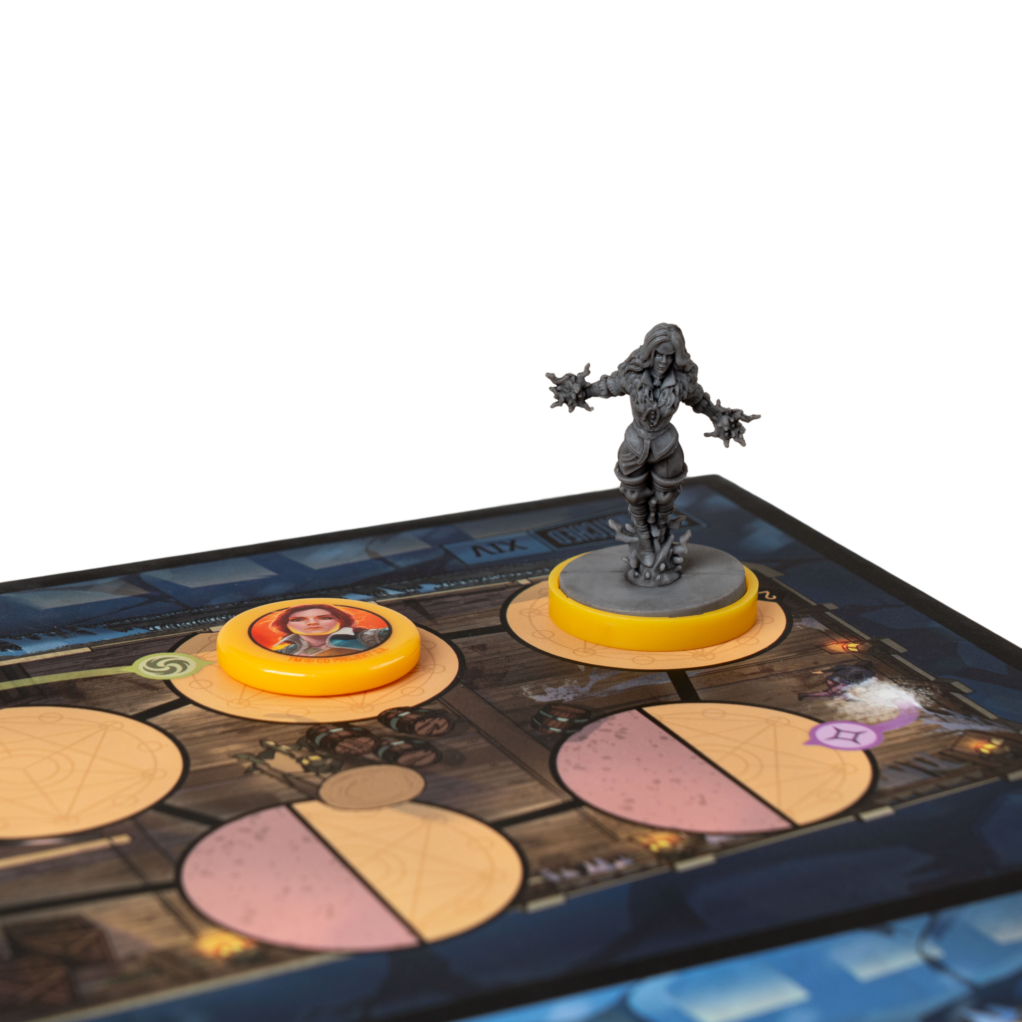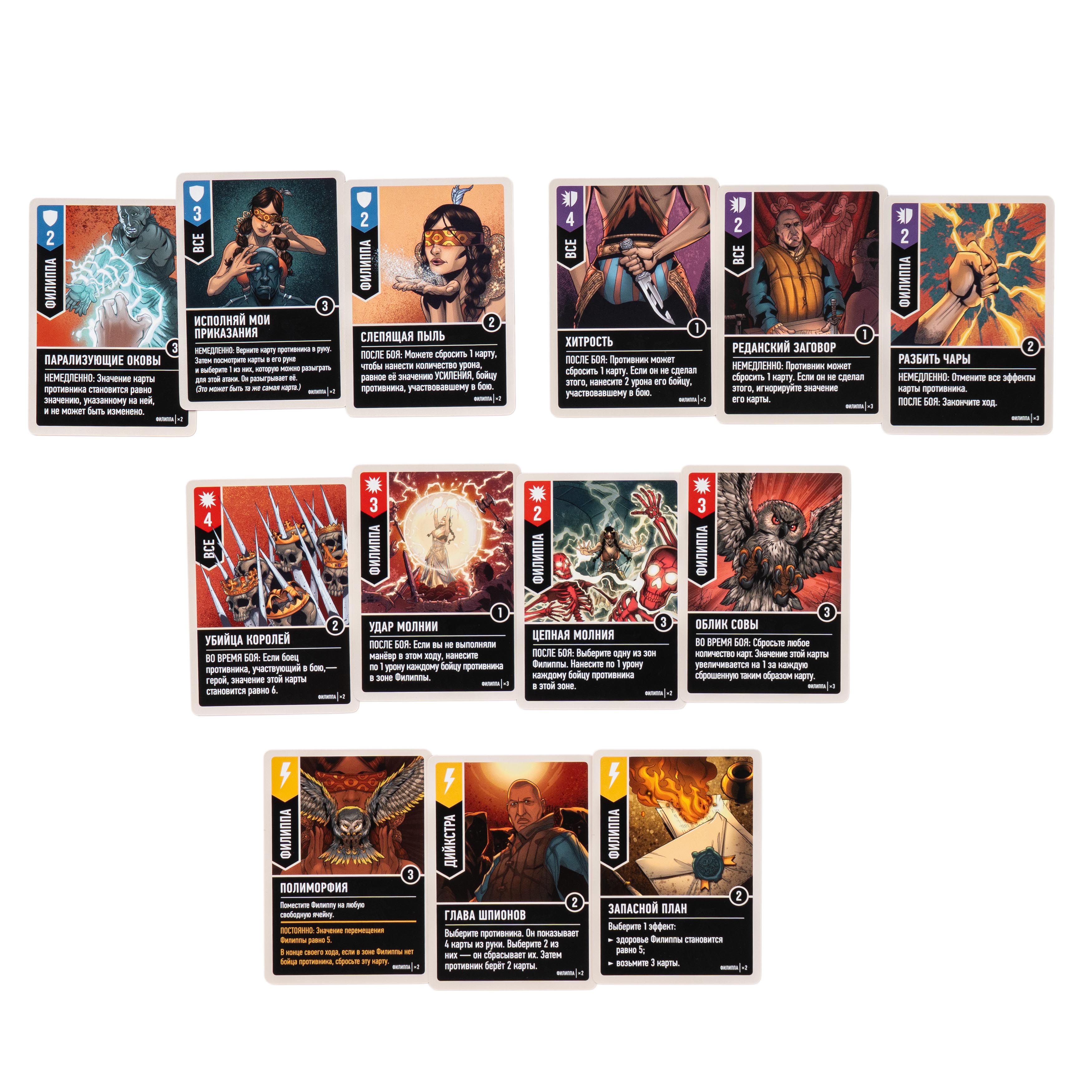 Трисс и Йеннифэр — единый колдовской дуэт. В начале партии вы решаете, кто будет героем, а кто — помощником. У них общая колода, но разные стили: Йеннифэр полагается на неотменяемые усиления, а Трисс заставляет врага выбирать между губительными эффектами и наносит урон даже соседям. Их постоянный приём увеличивает силу усилений, но обязывает атаковать каждый ход.